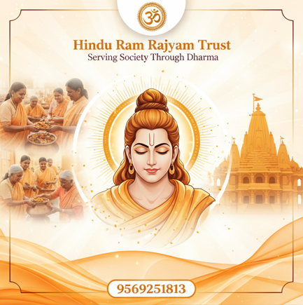Hindu Ram Rajyam Trust is a registered religious and charitable trust established on 05-02-2022. The trust works towards promoting spiritual awareness, ethical values, and community welfare inspired by the ideals of Lord Ram and the concept of Ram Rajya. All activities of the trust are non-political, non-profit, and carried out in accordance with applicable laws and social harmony. The trust focuses on responsible service, cultural awareness, and voluntary participation for the benefit of society.