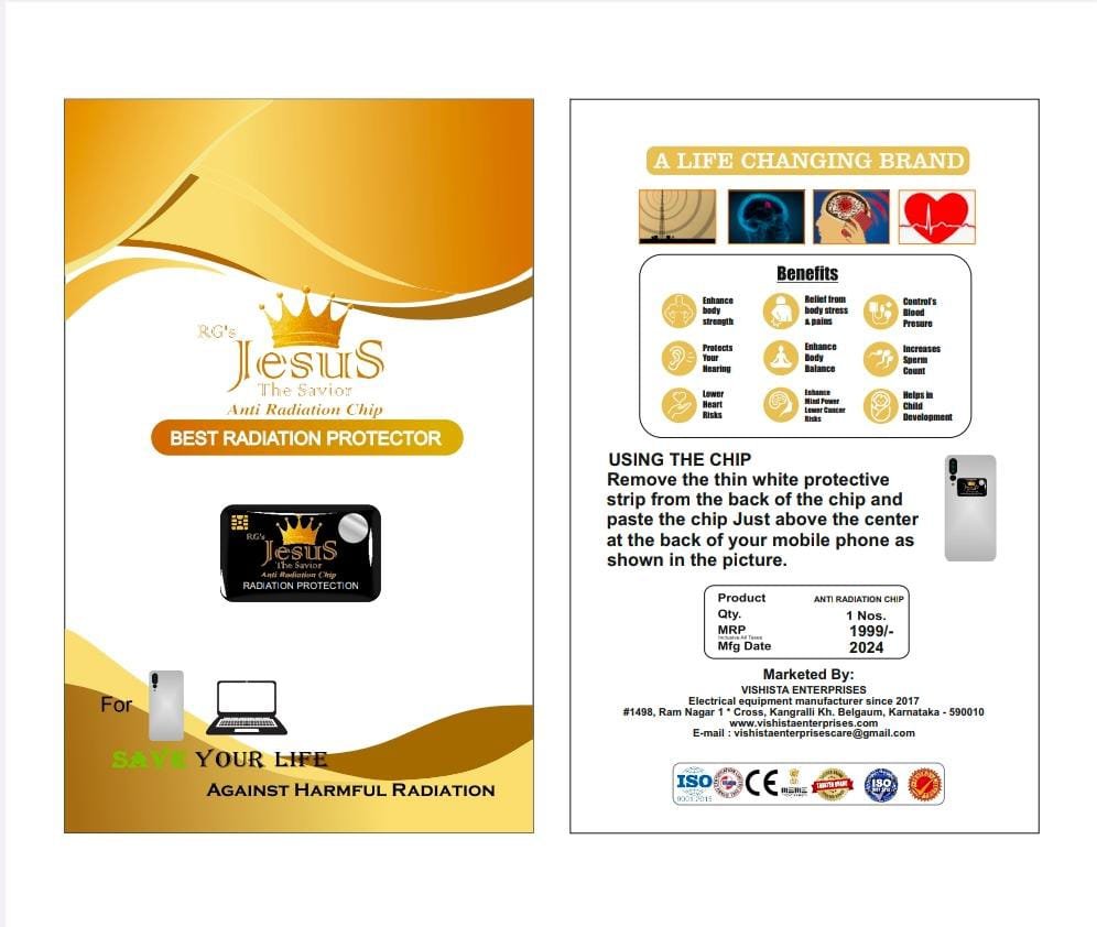 The RG’s Jesus The Savior Anti Radiation Chip is a revolutionary product designed to protect your body from harmful electromagnetic radiation emitted by mobile phones and other electronic devices. Carefully engineered, this chip not only shields you from radiation but also promotes overall health and well-being.