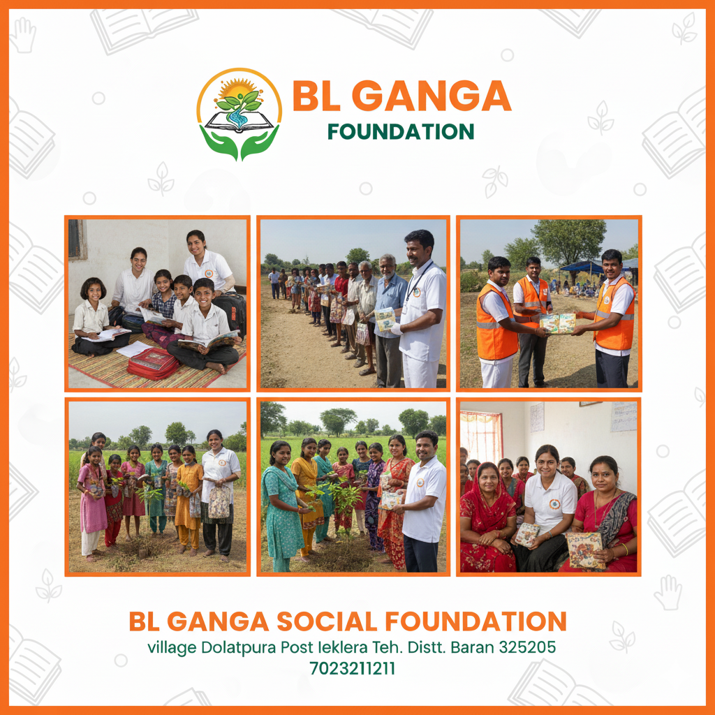 BL GANGA SOCIAL FOUNDATION एक सामाजिक संस्था है जो ग्रामीण क्षेत्रों में शिक्षा सहायता, स्वास्थ्य जागरूकता, महिला सशक्तिकरण, स्वच्छता अभियान और सामाजिक राहत सेवाओं में निरंतर कार्य कर रही है। हमारा उद्देश्य समाज के कमजोर और जरूरतमंद वर्गों को बेहतर अवसर, मदद और मार्गदर्शन प्रदान करना है ताकि हर व्यक्ति एक सम्मानजनक और सुरक्षित जीवन जी सके। हम जमीनी स्तर पर जाकर वास्तविक समस्याओं को समझते हैं और उनसे जुड़े समाधान और सहायता सीधे लोगों तक पहुँचाते हैं।