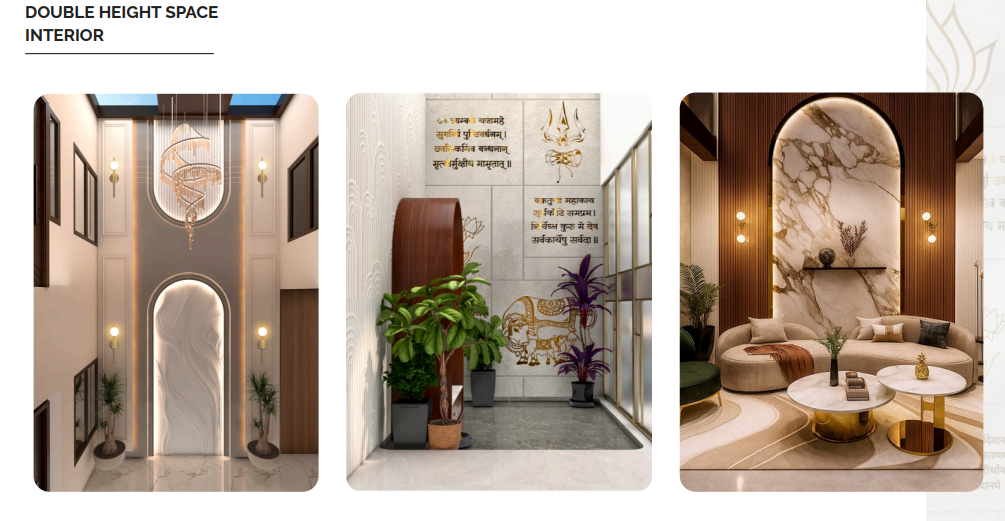 This Double Height Space Interior project showcases a grand and visually striking design focused on vertical openness, natural lighting, and premium detailing. The concept emphasizes tall windows, elegant railing design, dramatic lighting fixtures, and layered textures that highlight the scale of the space. Our team integrated modern materials, accent walls, railing elements, and décor features to enhance vertical symmetry and create a luxurious ambience. The project required precise planning of elevations, lighting composition, and structural placement to achieve a seamless balance between spaciousness and functionality. The result is a refined, airy, and visually rich interior environment crafted with meticulous attention to scale and detail.