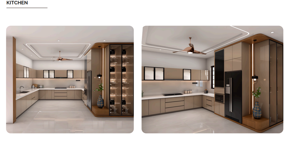 This modular kitchen project focuses on space optimization, elegant finishes, and efficient workflow design. The layout includes customized storage, soft-close hardware, chimney and hob integration, under-cabinet lighting, and carefully selected materials for durability and hygiene. The design enhances both aesthetics and convenience with proper zoning for cooking, preparation, and storage. From 3D visualization to final fitting and finishing, every detail was executed with precision to create a modern and highly functional kitchen space.
